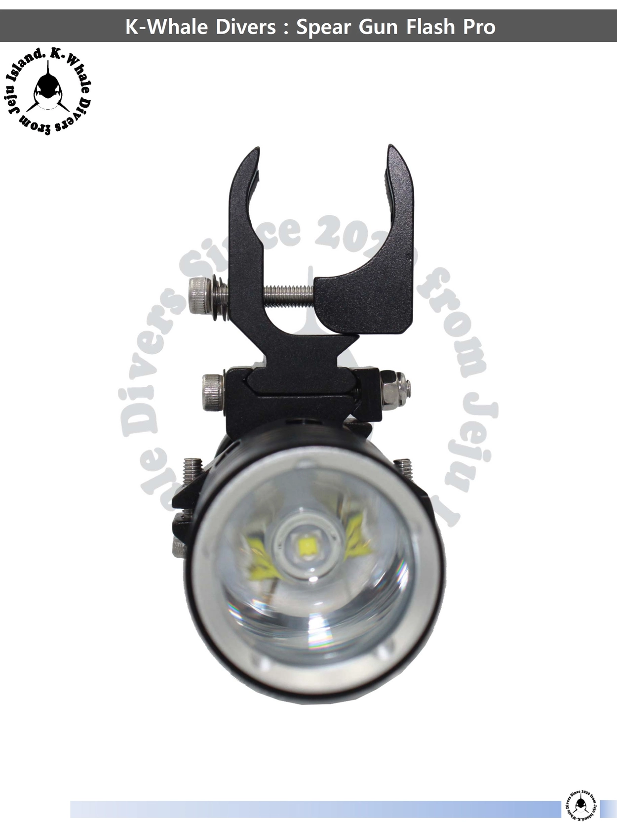 2020년 제주도 서귀포에서 시작된 브랜드 K-Whale Divers에서 제작한 전문 Spearfishing Gun 전용 랜턴입니다.