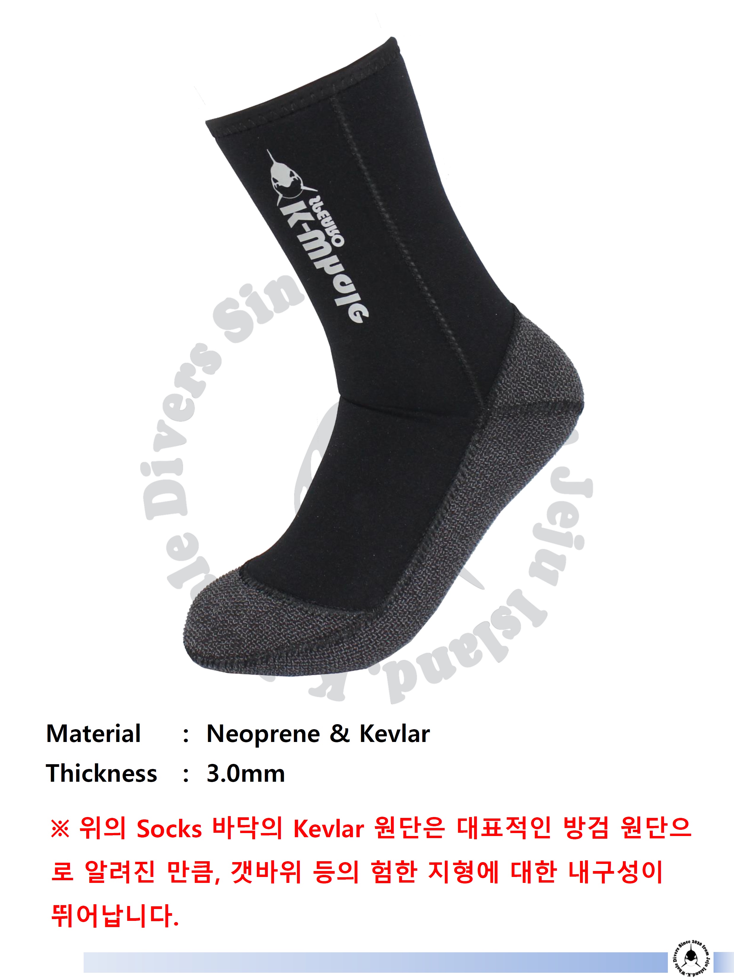 ※  K-Whale Divers에서 제작한 Spearfishing Socks 입니다.
