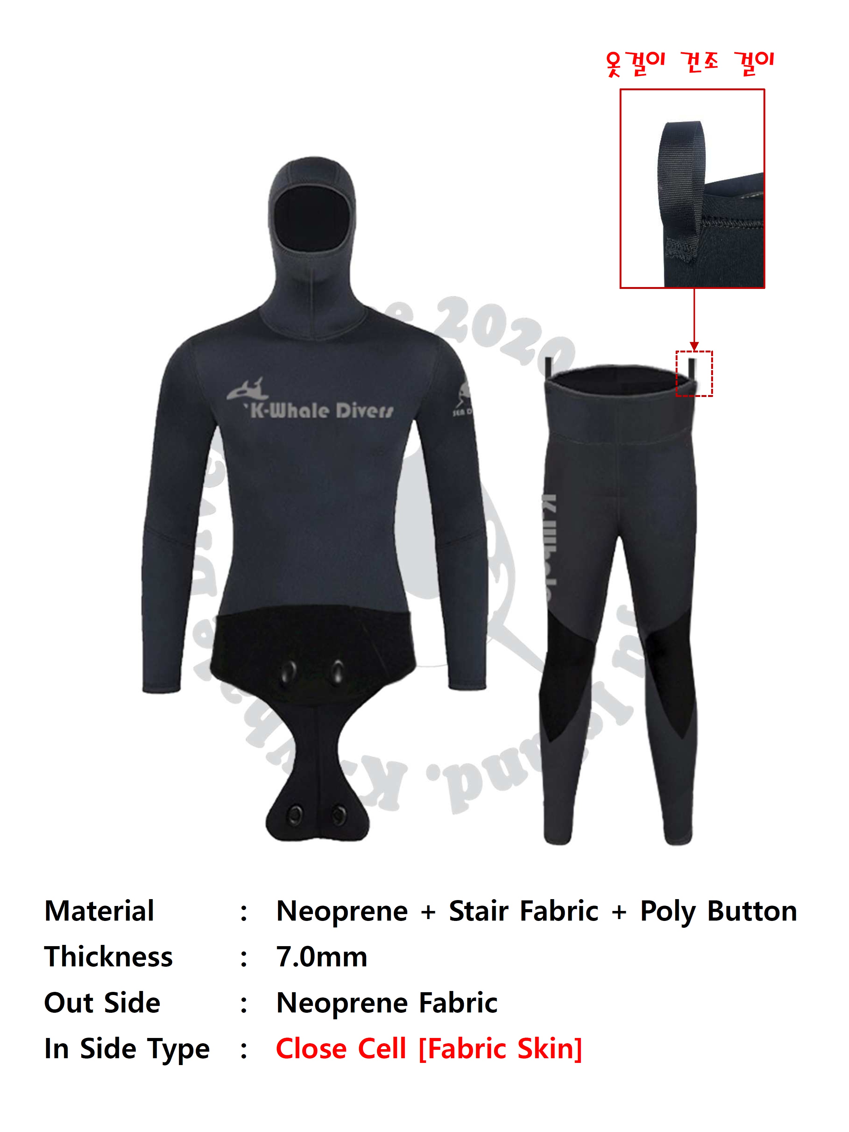 ※ K-Whale Divers에서 제작한 Diving Wet Suit 입니다. 개방수역 스쿠버 다이빙, 프리다이빙, 해루질에 적합하게 디자인 되었습니다.